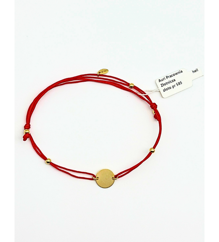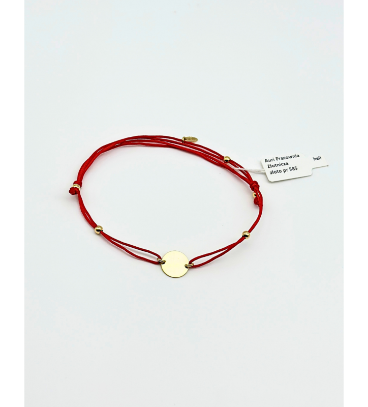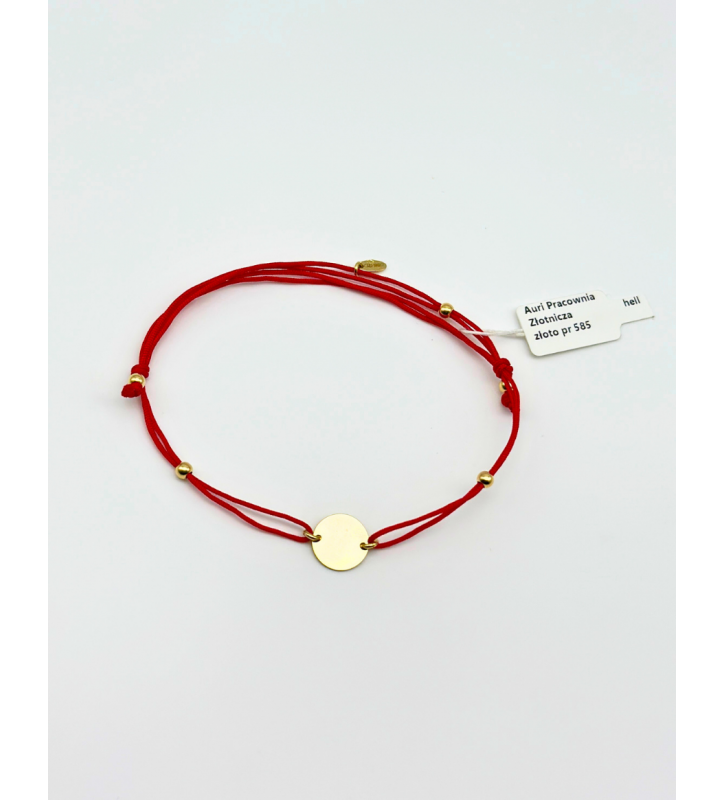 Bransoletka sznurkowa z zawieszką ze złota 585 – regulowana, ręcznie robiona | Auri Złotnik