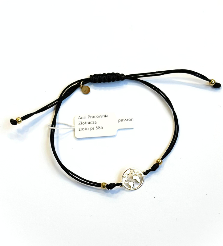 Złota bransoletka na czarnym sznurku – minimalistyczna elegancja