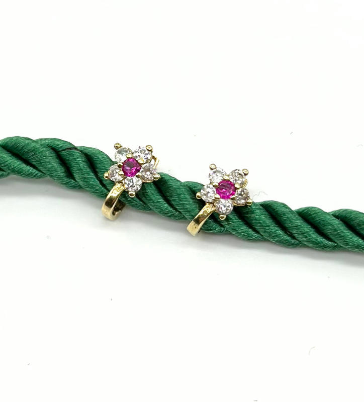 Złote kolczyki wiszące z cyrkoniami dla dziewczynki, Złoto Próby 585 14k