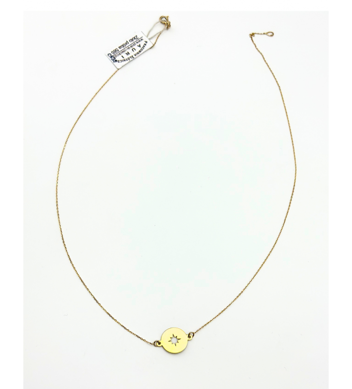 Złoty naszyjnik róża wiatrów, kompas, celebrytka, próba 585, 14k