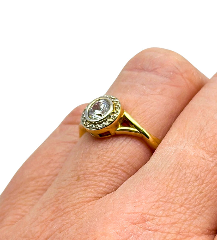 Odkryj elegancki złoty pierścionek bogato zdobiony z cyrkoniami, wykonany z 14-karatowego złota próby 585. Idealny dodatek na każdą okazję.