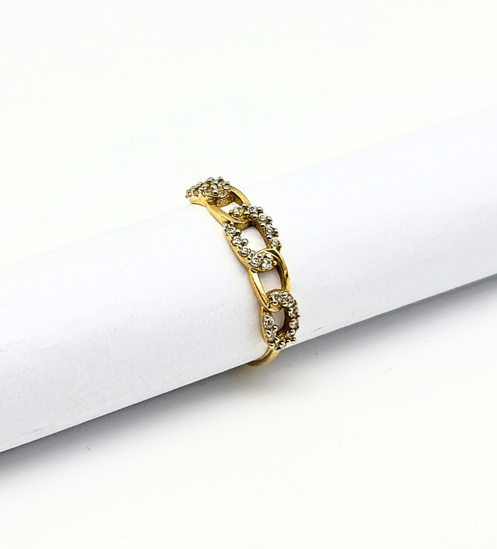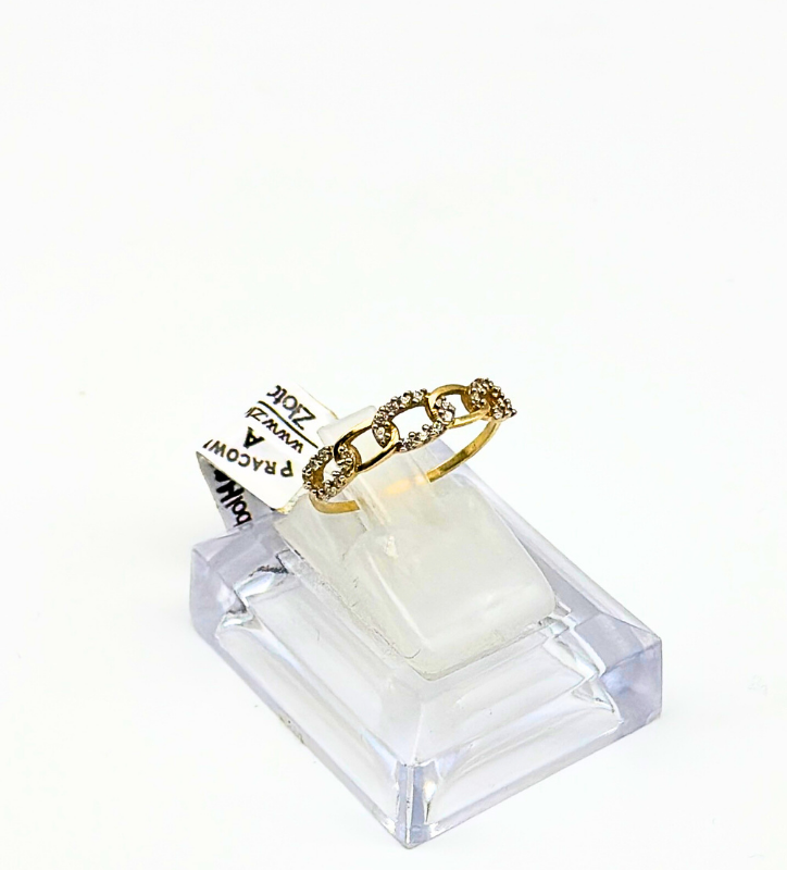 Odkryj elegancki złoty pierścionek z białymi cyrkoniami, wykonany z 14-karatowego złota próby 585.