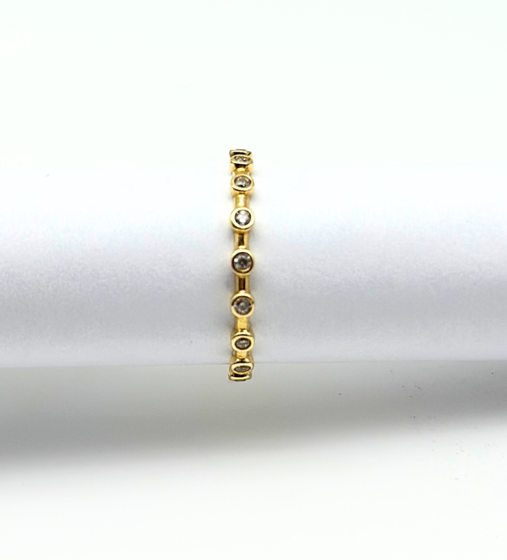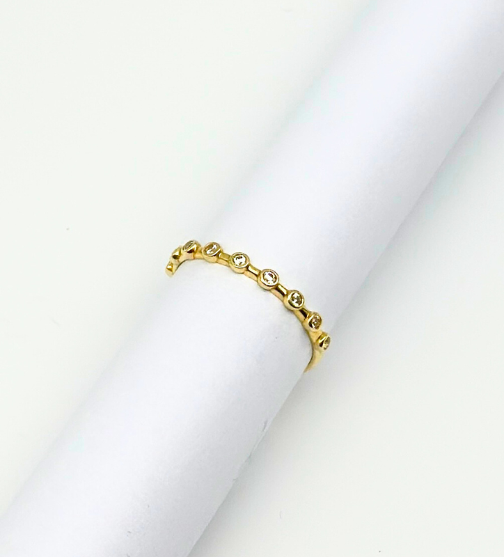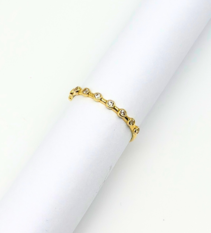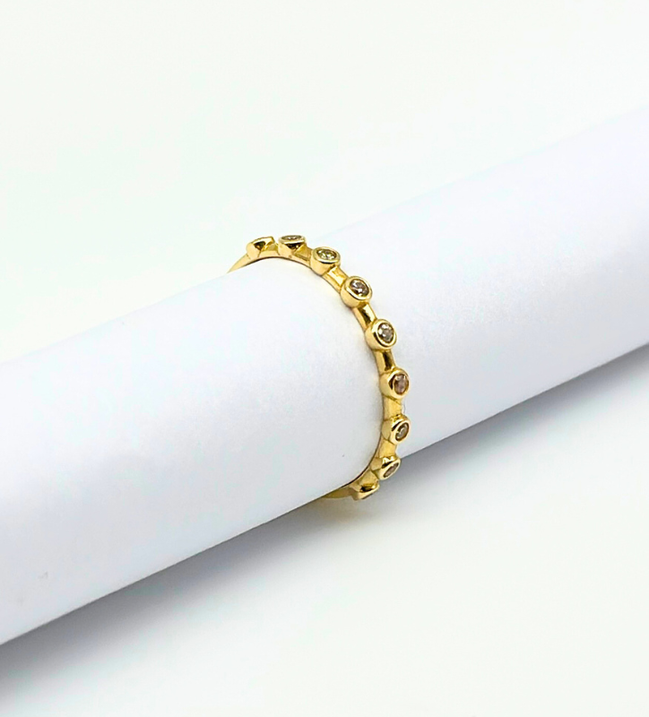 Złoty pierścionek z cyrkoniami, wykonany z 14-karatowego złota próby 585.