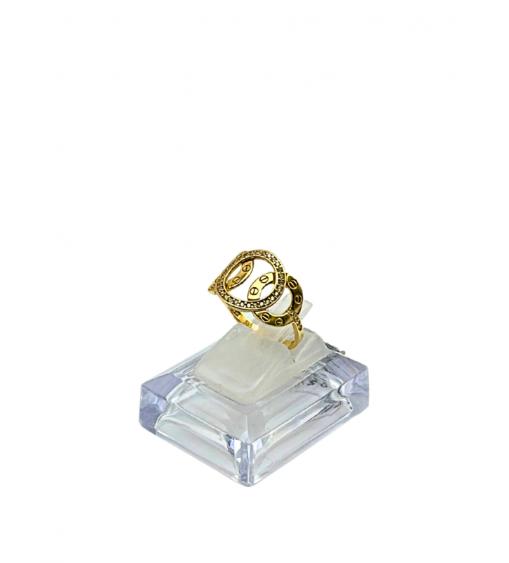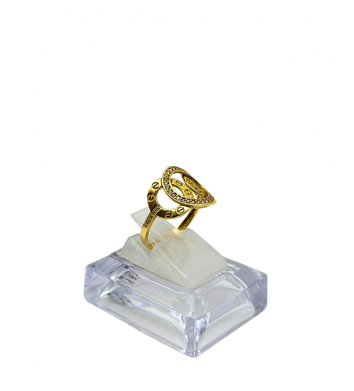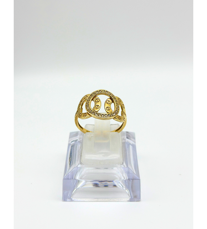 Złoty pierścionek z cyrkoniami, wykonany z 14-karatowego złota próby 585.