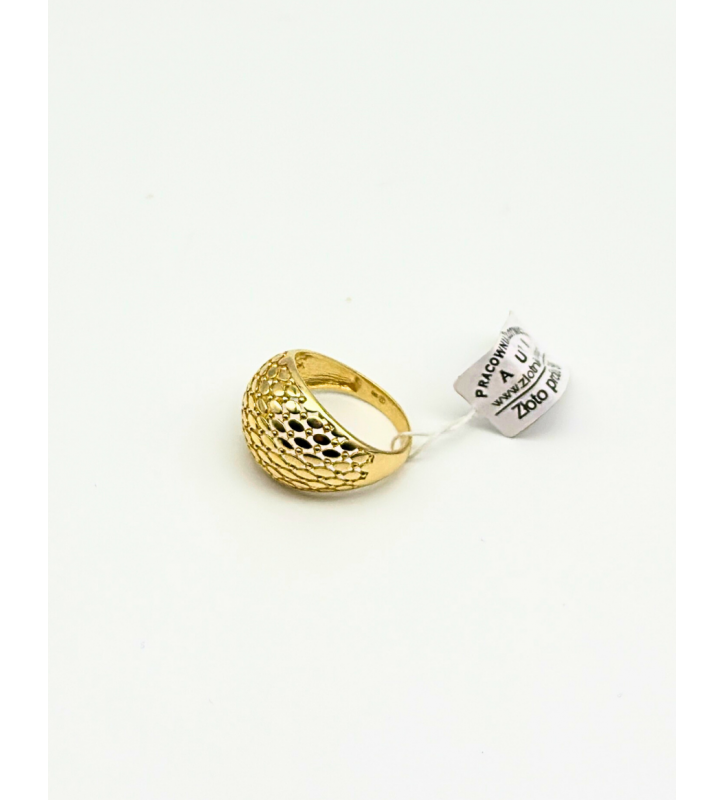 Piękny, duży, złoty ażurowy pierścionek, wykonany z 14-karatowego złota próby 585.