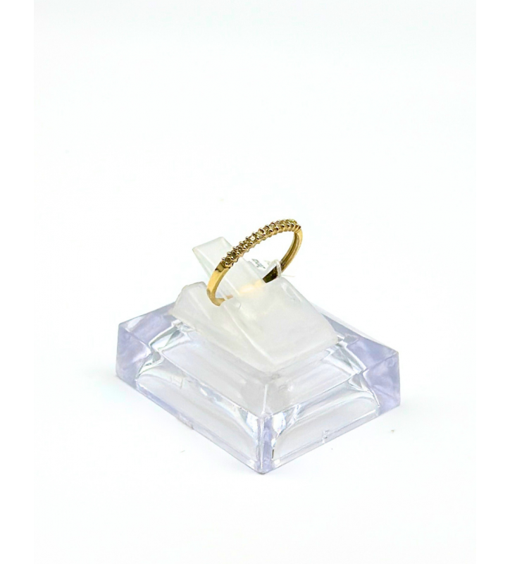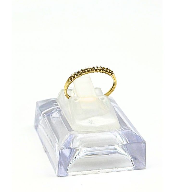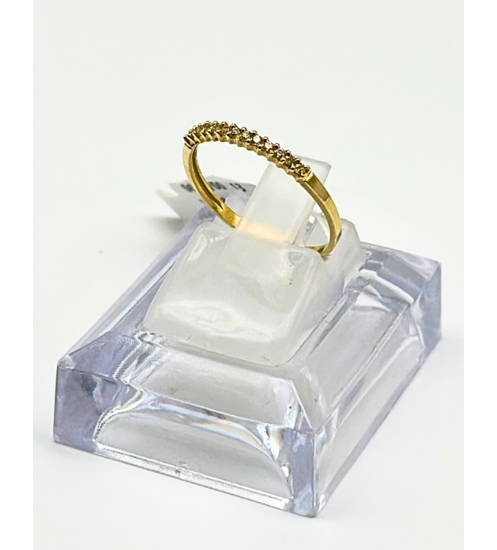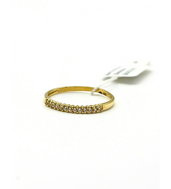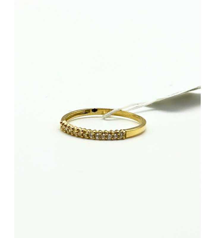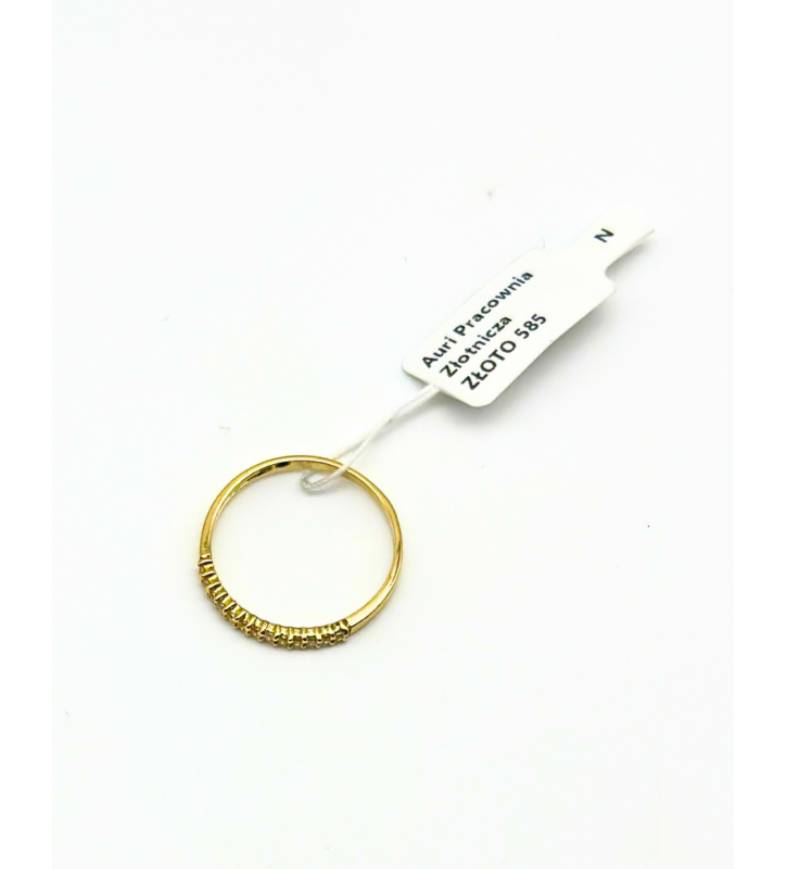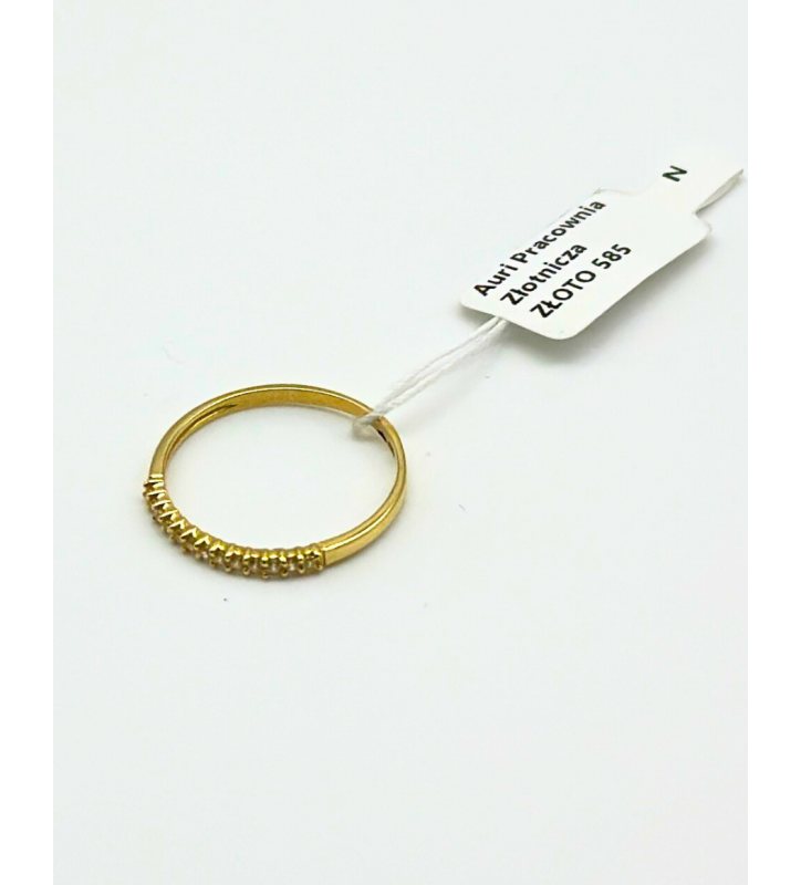 Klasyczny złoty pierścionek typu rzędówka, ozdobiony rzędem lśniących cyrkonii, to biżuteria, która nigdy nie wychodzi z mody. Wykonany ze złota próby 585, łączy w sobie subtelną elegancję i ponadczasowy charakter, dzięki czemu idealnie pasuje zarówno na co dzień, jak i na wyjątkowe okazje.