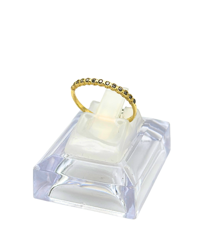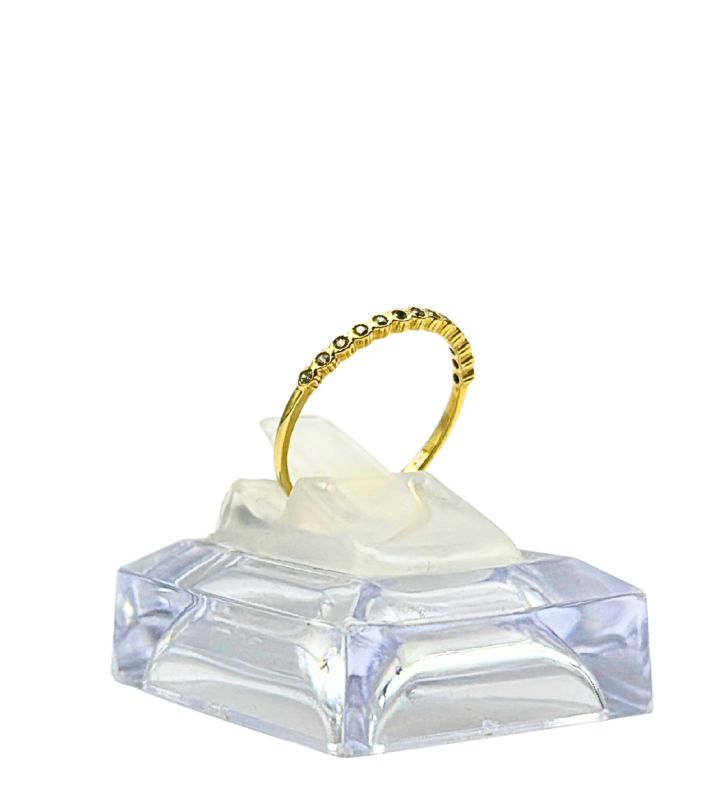 Klasyczny złoty pierścionek typu rzędówka, ozdobiony rzędem lśniących cyrkonii, to biżuteria, która nigdy nie wychodzi z mody. Wykonany ze złota próby 585, łączy w sobie subtelną elegancję i ponadczasowy charakter, dzięki czemu idealnie pasuje zarówno na co dzień, jak i na wyjątkowe okazje.