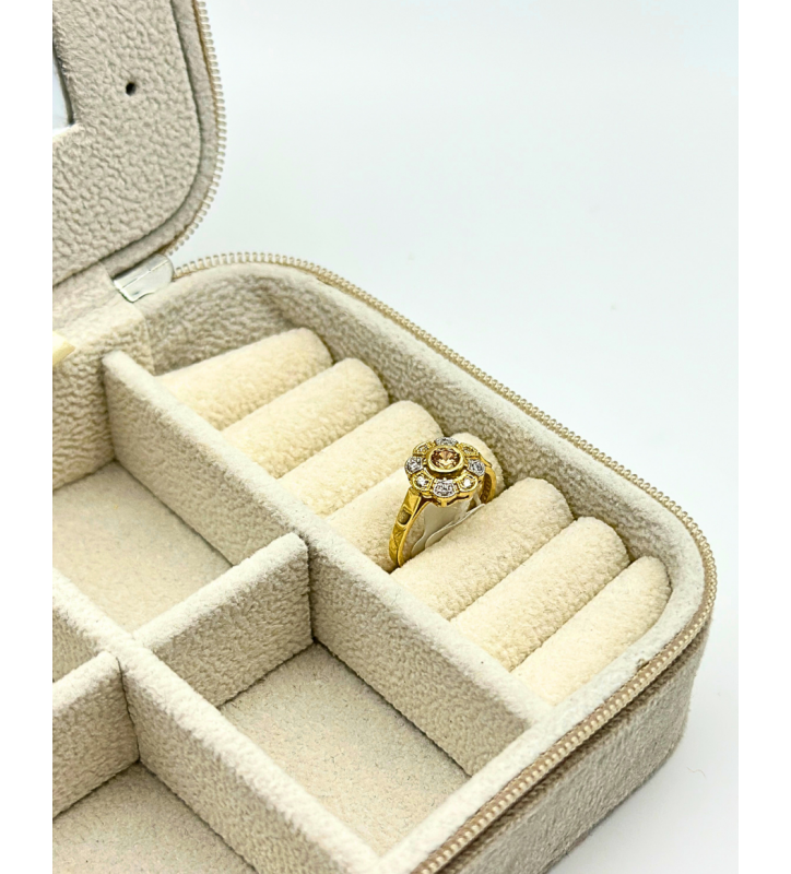 Delikatny połysk złota i blask cyrkonii sprawiają, że pierścionek pięknie prezentuje się samodzielnie, ale równie efektownie wygląda w połączeniu z innymi pierścionkami. To także doskonały pomysł na prezent dla osoby, która ceni klasykę w nowoczesnym wydaniu.
