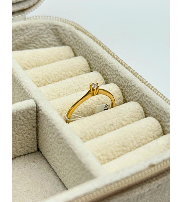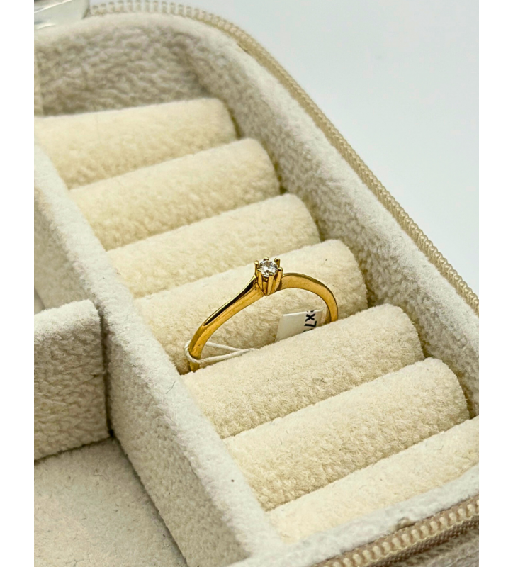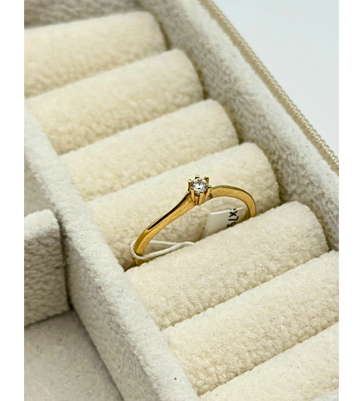Delikatny połysk złota i blask cyrkonii sprawiają, że pierścionek pięknie prezentuje się samodzielnie, ale równie efektownie wygląda w połączeniu z innymi pierścionkami. To także doskonały pomysł na prezent dla osoby, która ceni klasykę w nowoczesnym wydaniu.