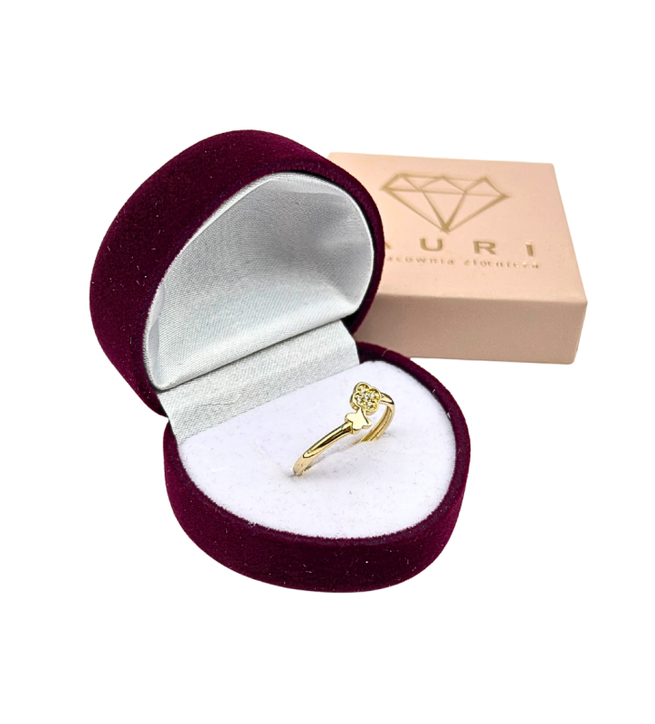 Delikatny połysk złota i blask cyrkonii sprawiają, że pierścionek pięknie prezentuje się samodzielnie, ale równie efektownie wygląda w połączeniu z innymi pierścionkami. To także doskonały pomysł na prezent dla osoby, która ceni klasykę w nowoczesnym wydaniu.