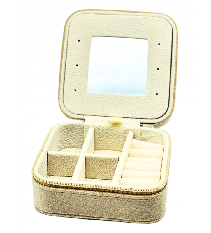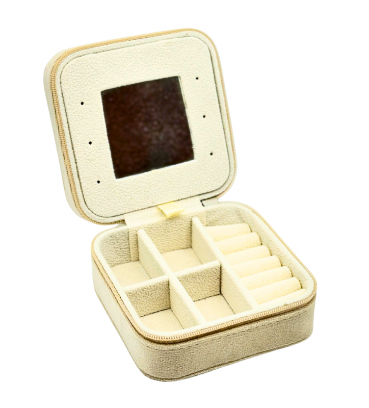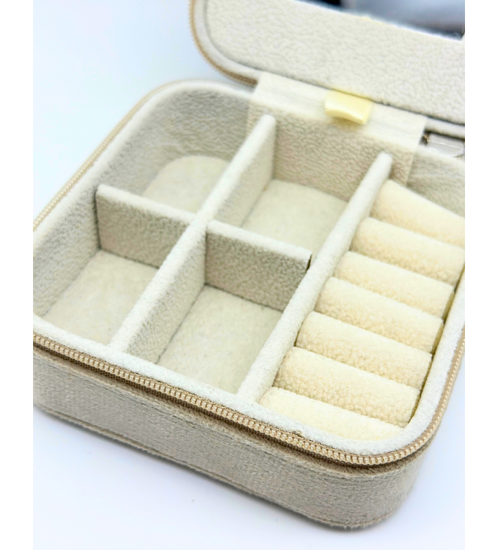 Praktyczne i stylowe etui na biżuterię w kolorze beżu to idealne rozwiązanie do przechowywania i transportu Twoich ulubionych dodatków.